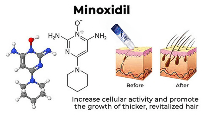 A topical treatment for hair loss is minoxidil. It is a safe active component that has received FDA approval. In the locations where it is applied, it widens blood vessels and enhances blood flow.